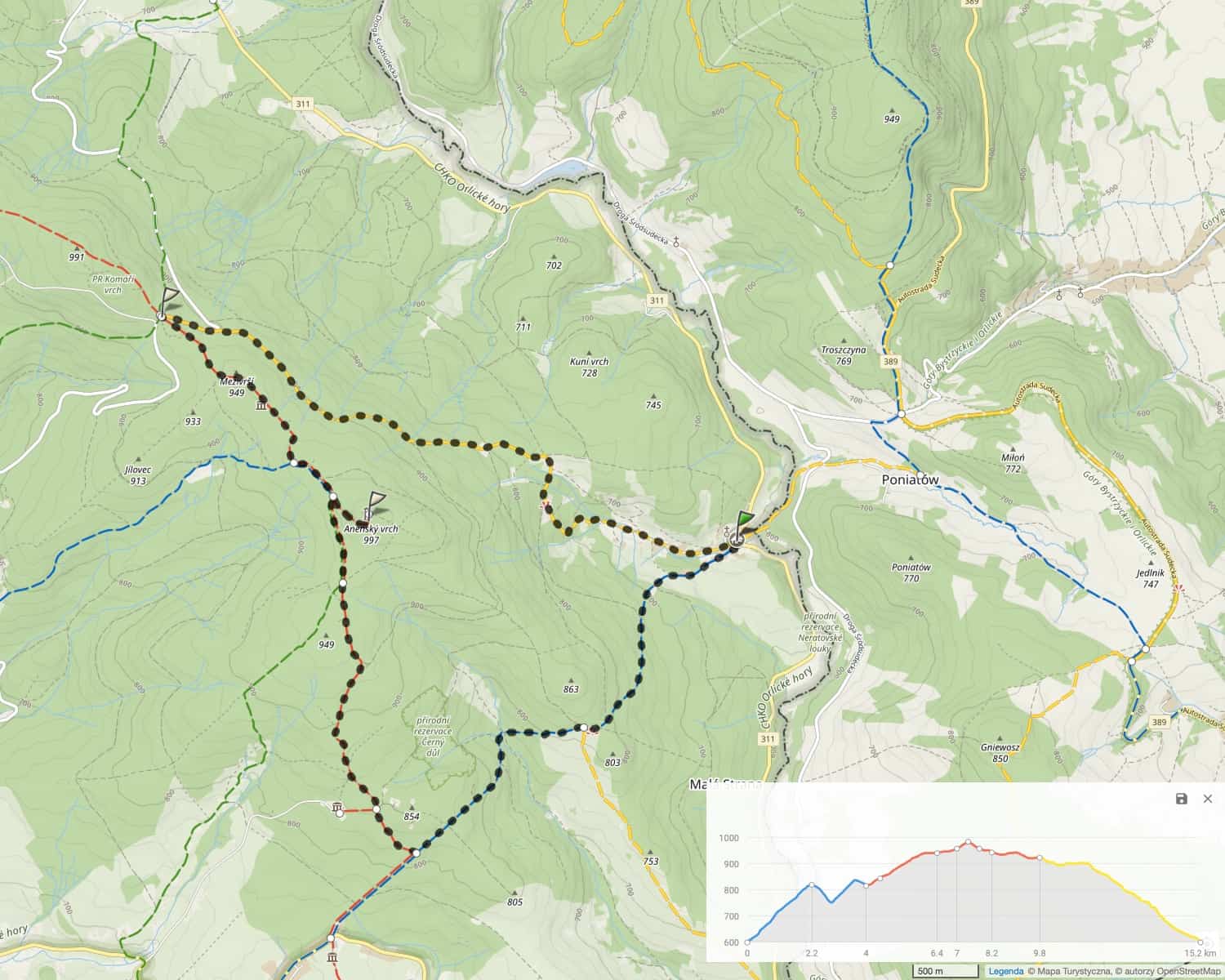 Oprócz wieży widokowej Jagodna - ze Spalonej łatwo zorganizować wyprawę na 4 inne pobliskie wieże: na Czerniec, na Orlicę, na Anensky Vrch i na Velka Destna: