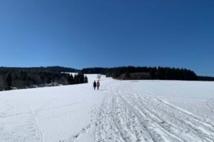 Będąc w tej okolicy, warto zapuścić się dalej – do Masarykovej Chaty. To duże schronisko po czeskiej stronie, pięknie położone i z dobrym jedzeniem. Cała pętla spod Kamienia Rübartscha do Masarykovej Chaty to niecałe 11 km, a suma podejść wynosi 300 m.