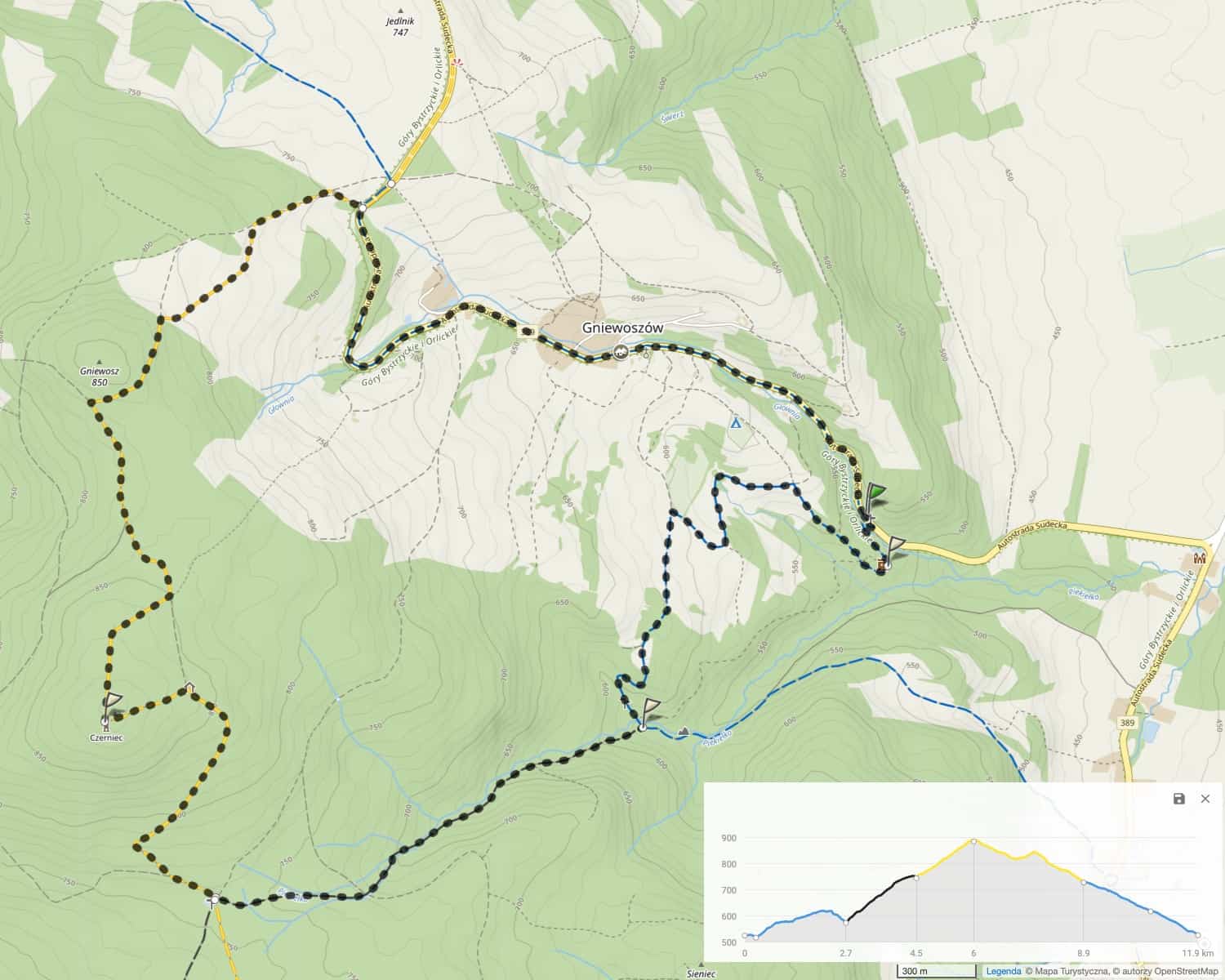 Ze Spalonej z naszych apartamentów na Czerniec można dojść na piechotę, ale to duża wyprawa, bo w jedną stronę 14 km i prawie 490 m podejść. A jeszcze trzeba wrócić!